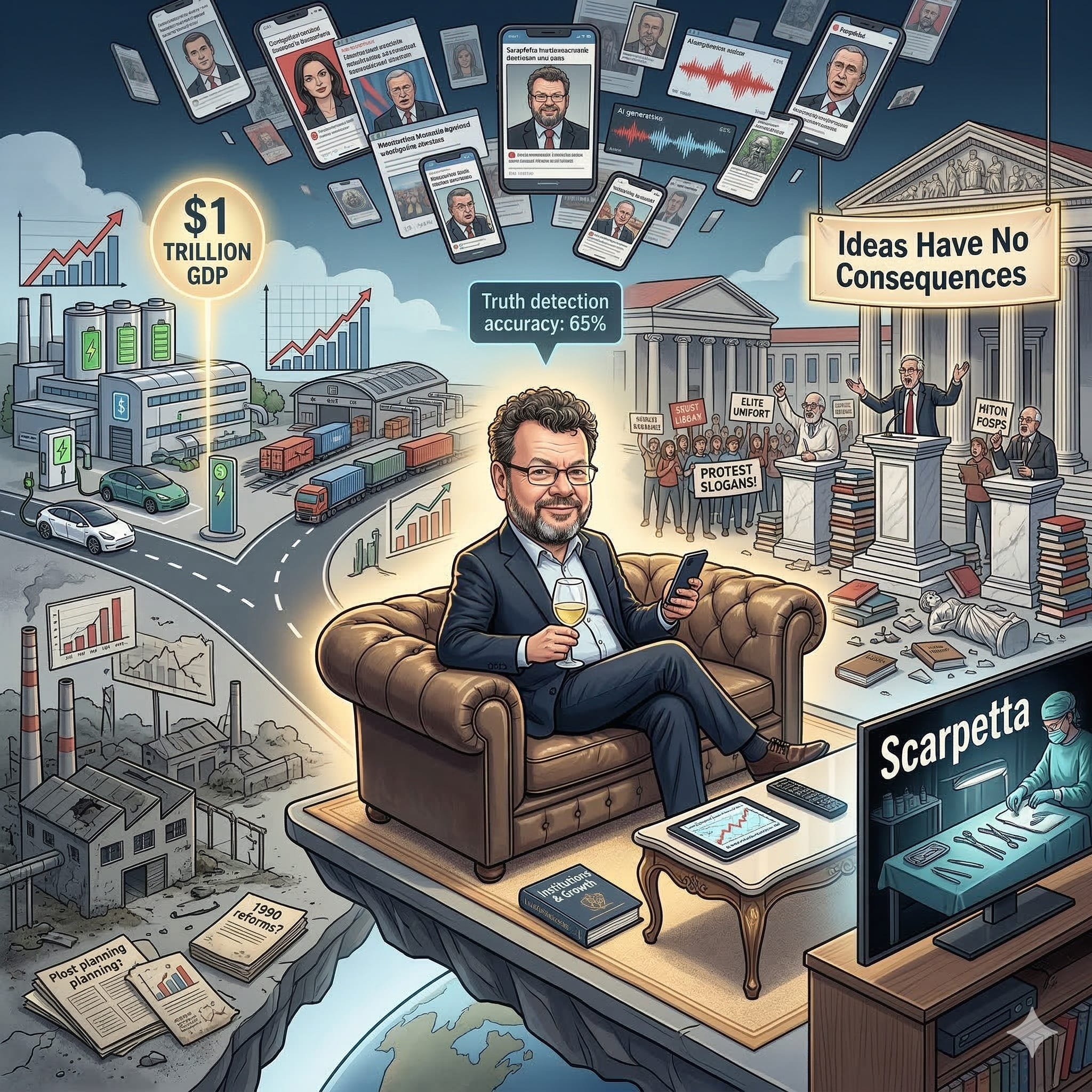 Your favorite sofa expert is back at the base. So there I am, sitting with a glass of white wine, scrolling through the feed and realizing one thing: how good it is that my sofa is so heavy and stable. Because the world this week is shaking as if it has decided to simultaneously cancel reality, mathematics, and historical memory. This week we will see how the economy, the academic elite, and technology conspired to finally drive us all insane.