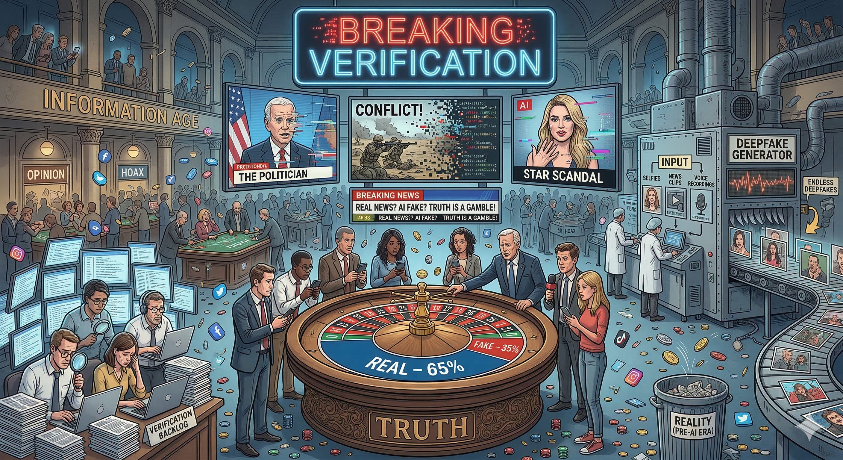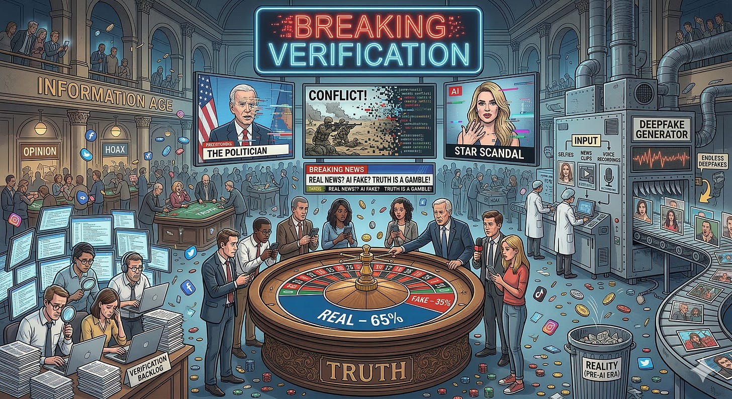 Раньше, чтобы устроить масштабную дезинформацию, нужны были телеканалы, спецслужбы и бюджеты. Теперь технологии демократизировали ложь: вам нужен только смартфон и немного мотивации. Алгоритмы услужливо подсовывают нам то, что подтверждает наши предубеждения, а цифровые ассистенты закрепляют эту иллюзию. Исследователи из Института Reuters в Оксфорде недавно опросили медийщиков, и один из них выдал блестящий прогноз: скоро вместо привычных “экстренных новостей” (breaking news) у нас будет “экстренная верификация” (breaking verification). Кто-то даже предлагает ввести цифровую “цепочку поставок” для информации – чтобы видеть, откуда файл взялся и кто его редактировал. Но это всё попытки лечить симптомы, когда болезнь уже вошла в хроническую стадию.