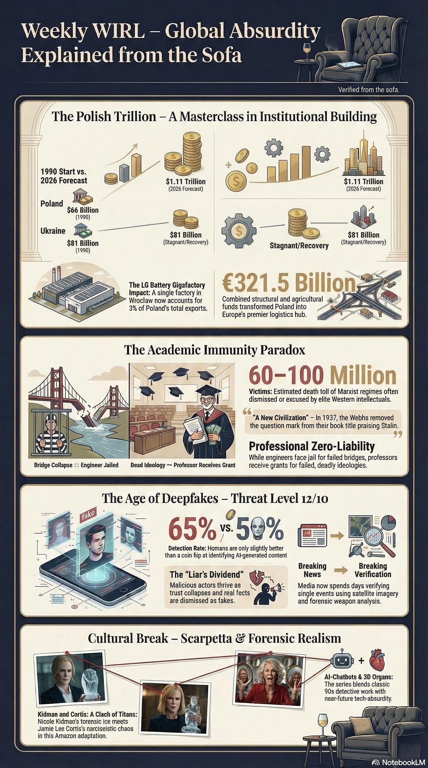 So what can I say from my sofa? Poland’s trillion dollars proves only one thing: an economic miracle does not require magical thinking or the invention of a “special path.” It is an entirely pragmatic conveyor belt that runs uninterrupted on the rule of law, free competition, and reinforced-concrete guarantees for investors. Their story is the best proof that the right institutional reforms, even if they are very painful at the start, reliably deliver trillion-dollar results at the finish.